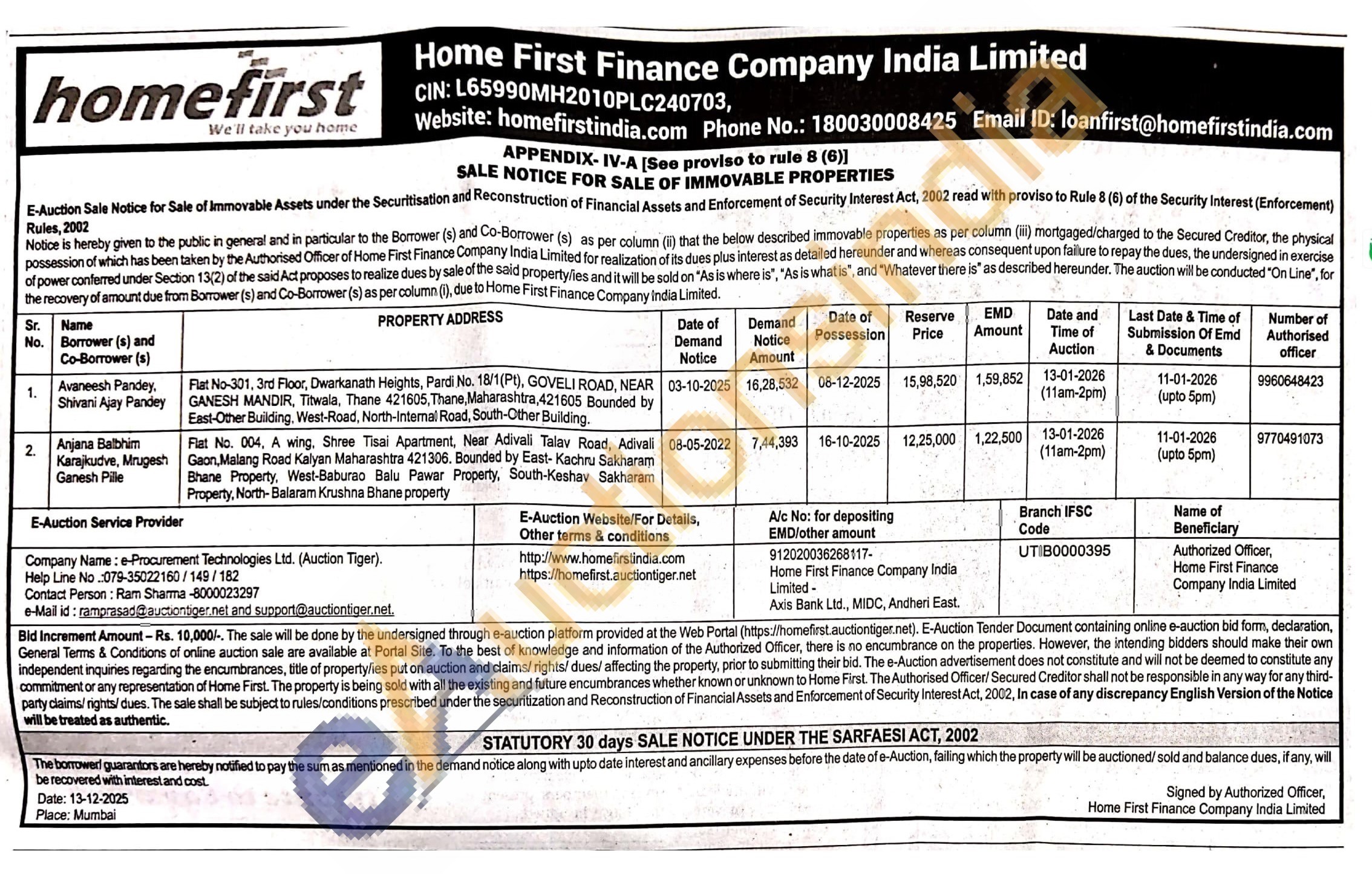 Flat No-301, 3rd Floor, Dwarkanath Heights, Pardi No. 18/1 (Pt), GOVELI ROAD, NEAR GANESH MANDIR, Titwala, Thane 421605, Thane, Maharashtra, 421605 Bounded by East-Other Building, West-Road, North-Internal Road, South-Other Building.