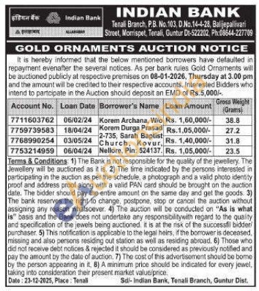 Indian Bank Gold Auctions Auction in Guntur