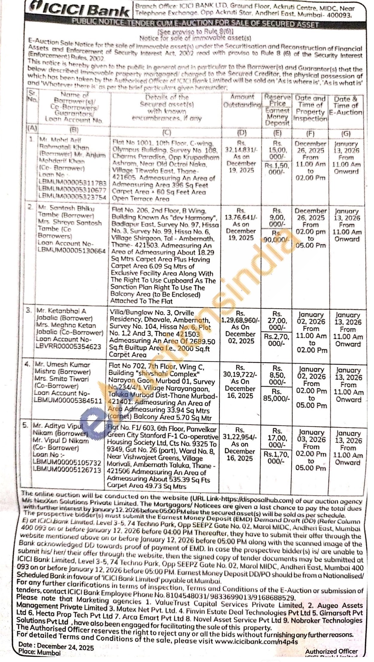 2) Flat No. 206. 2nd Floor, B Wing. Building Known As "dev Badlapur East, Survey No. 97, Hissa No. 3, Survey No. 99, Hissa No. 6, Village Shirgeon, Tol-Ambernath. Thane 421503. Admeasuring An Areo of Admeasuring About 18.29 Sq Mtrs Carpet Area Plus Having Carpet Area 6.09 Sq Mtrs of Exclusive Facility Area Along With The Right To Use Cupboard As The Sanction Plan Right To Use The Balcony Area (to Be Enclosed) Attached To The Flat