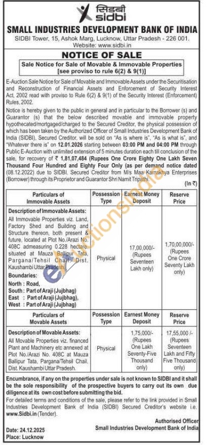 All Movable Properties viz. financed Plant and Machinery etc annexed at Plot No Arazi No. 408C at Mauza Ballipur Tata, Pargana/Tehsil Chail Dist. Kaushambi Uttar Pradesh.
