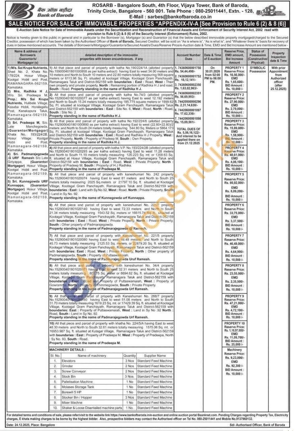 contact the Authorised officer on Tel No. 080-25011441 and Mobile No.9137960132