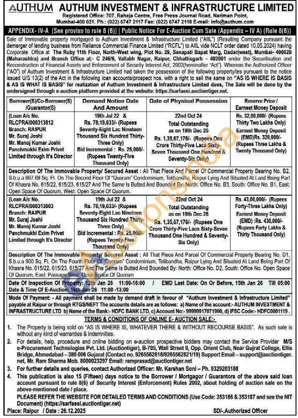 Authorized Officer: Mr. Karshan Soni - Phone No : 9329203188
