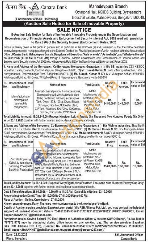 Yard Details : All the Machineries are located at No.21, 1st Phase, KIADB Industrial area. Malur, Kolar District-563130