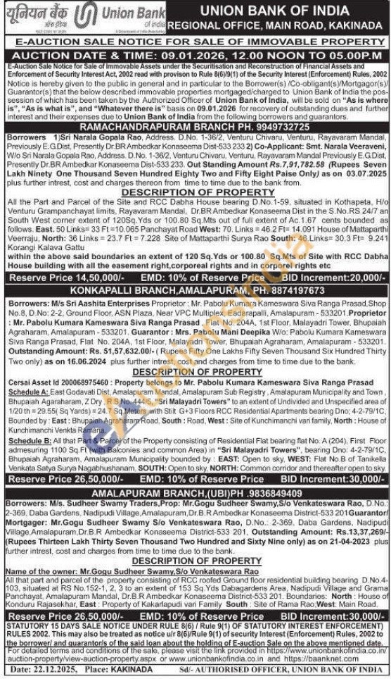 DESCRIPTION OF PROPERTY : All the Part and Parcel of the Site and RCC Dabha House bearing D.No. 1-59, situated in Kothapeta, H/o Venturu Grampanchayat limits. Rayavaram Mandal, Dr. BR Ambedkar Konaseema Dist in the S.No.RS 24/7 an South West corner extent of 120Sq. Yds or 100.80 Sq.Mts out of full extent of Ac.1.67 cents bounded as follows. East. 50 Links 33 Ft=10.065 Panchayat Road West: 70. Links = 46.2 Ft= 14.091 House of Mattaparthi Veerraju, North: 36 Links = 23.7 Ft=7.228 Site of Mattaparthi Surya Rao South: 46.Links= 30.3 Ft 9.241 Korangi Kalava Gattu