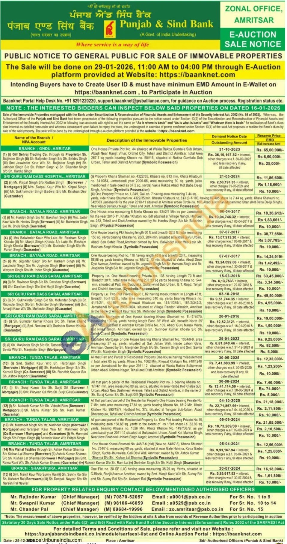 All part and parcel of the Residential Property i.e. One Plot bearing Private No.15, measuring area 158.88 sq yards to the extent of its 1/3rd share ie. 52.96 sq. yards, bearing Khasra no. 1526 Min, Khata Khatoni No. 1497/3079, as per Jamabandi year 2011-12 situated at Sultanwind Urban, Abadi Kot Mahna Singh, Near New Shaheed Udham Singh Nagar, Amritsar (Symbolic Possession)