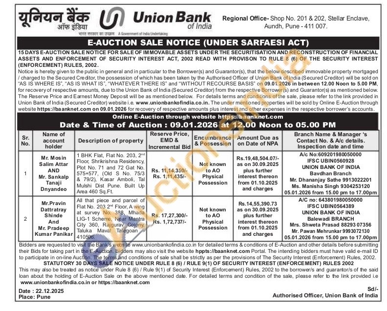 1 BHK Flat, Flat No. 203, 2nd Floor, Shrikrishna Residency, Plot No. 71 and 72 Gat No. 575+577, (Old S No. 75/3 & 79/2), Kasar Amboli, Tal Mulshi Dist Pune. Built Up Area 460 Sq.Ft.