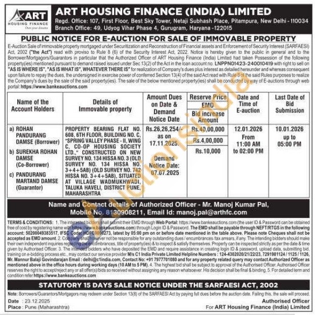 Authorized Officer - Mr. Manoj Kumar Pal, Mobile No. 8130908211,