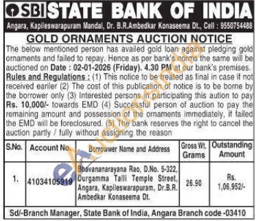 State Bank of India Gold Auctions Auction in Konaseema