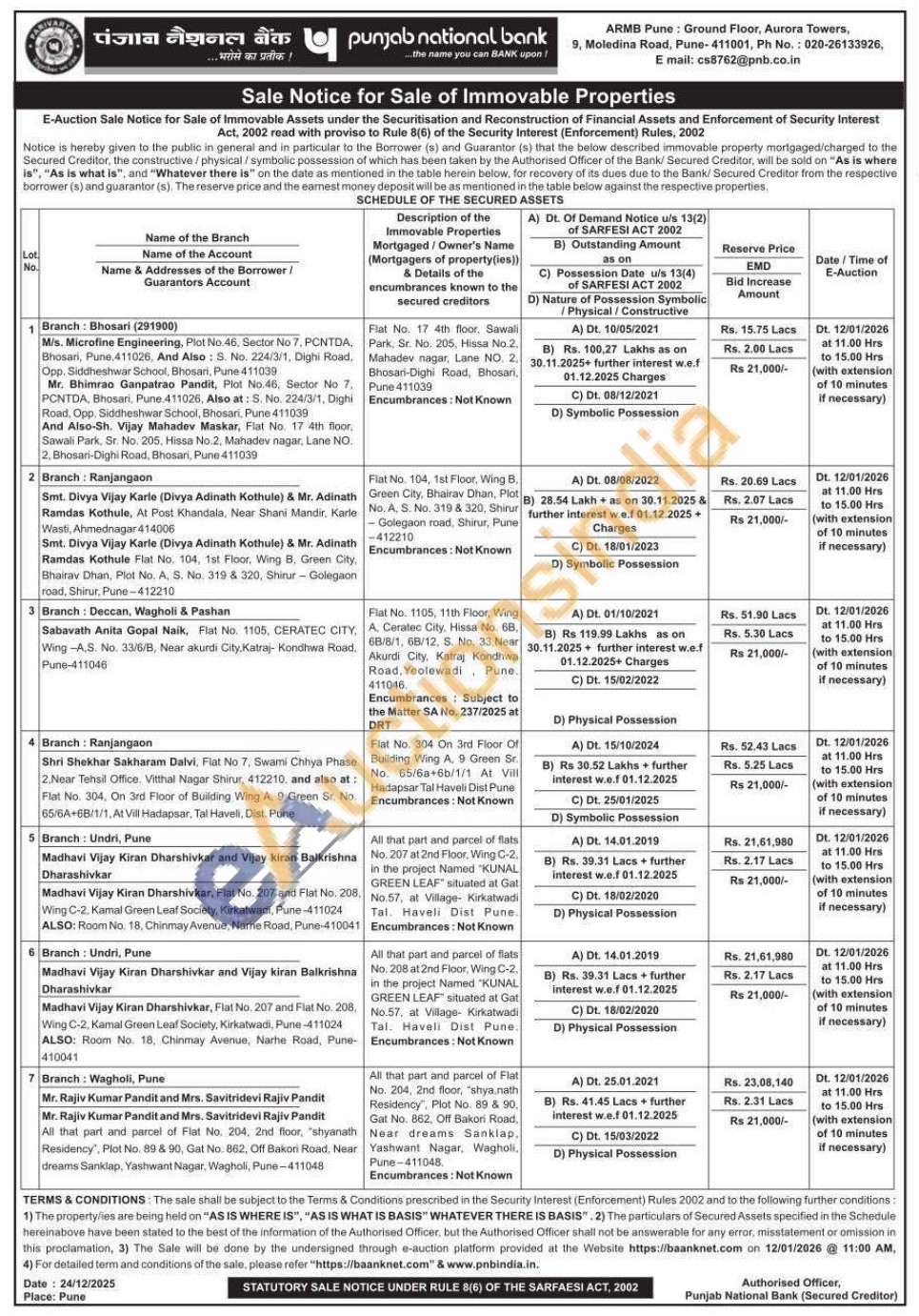 Contact No : 020-26133926, E mail: cs8762@pnb.co.in