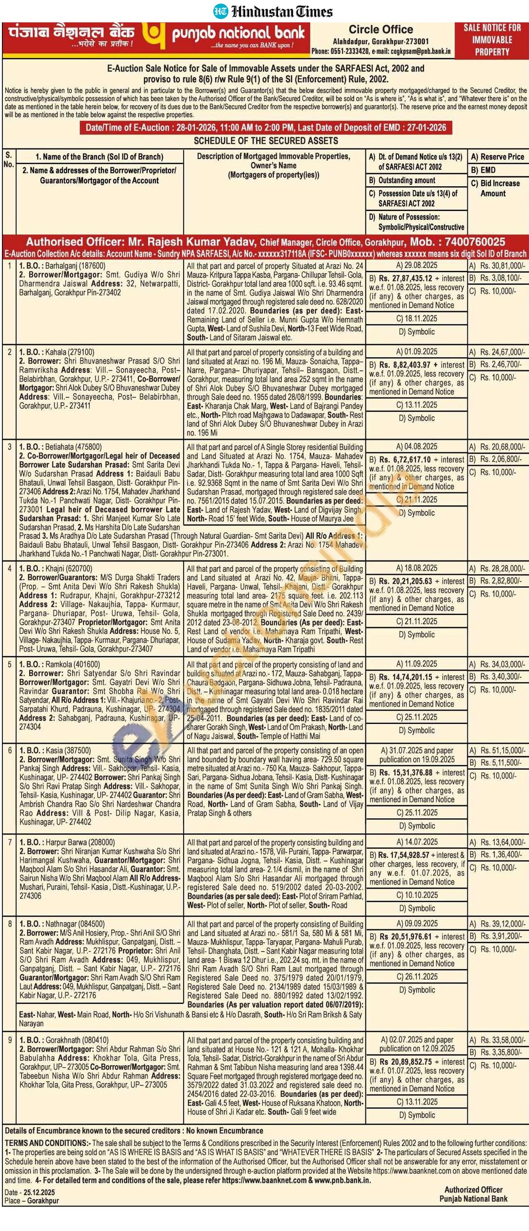 All that part and parcel of the property consisting of Building and Land situated at Arazi No. 42, Mauja- Bhitni, Tappa-Haveli, Pargana- Unwal, Tehsil- Khajani, Distt. Gorakhpur measuring total land area- 2175 square feet. i.e. 202.113 square metre in the name of Smt Anita Devi W/o Shri Rakesh Shukla mortgaged through Registered Sale Deed no. 2439/2012 dated 23-08-2012. Boundaries (As per deed): East-Rest Land of vendor i.e. Mahamaya Ram Tripathi, West-House of Sudama Yadav, North- Kharaja govt. South- Rest Land of vendor i.e. Mahamaya Ram Tripathi