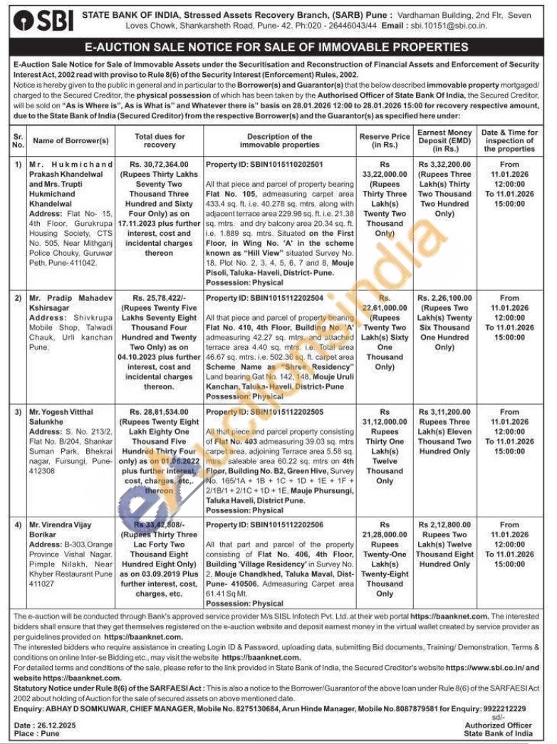 All that part and parcel of the property consisting of Flat No. 406, 4th Floor, Building 'Village Residency' in Survey No. 2. Mouje Chandkhed, Taluka Maval, Dist-Pune 410506. Admeasuring Carpet area 61.41 Sq Mt.