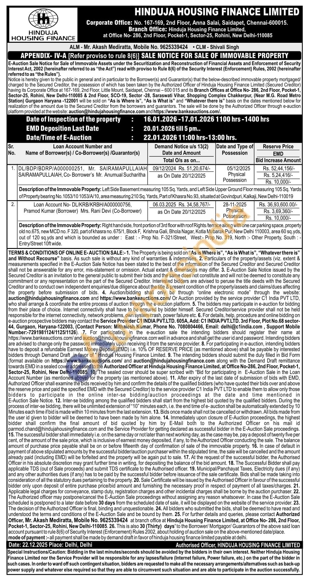 Authorized Officer, Mr. Akash Mediratta, Mobile No. 9625339424