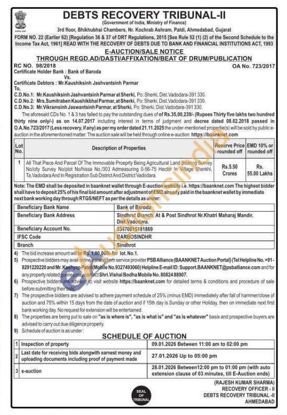 All That Piece And Parcel Of The Immovable Proeprty Being Agricultural Land Bearing Survey Nolcity Survey No/plot No/hissa No./303 Admeasuring 0-56-75 Hector In Village Sherkhi, Ta. Vadodara And In Registration Sub District And District Vadodara