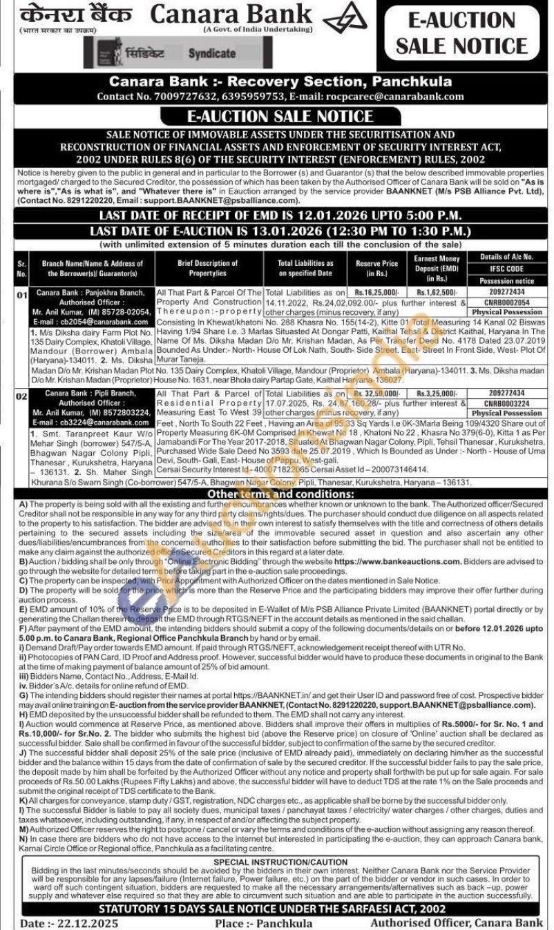 All That Part & Parcel Of The Property And Construction Thereupon:-property Consisting In Khewat/khatoni No. 288 Khasra No. 155(14-2), Kitte 01 Total Measuring 14 Kanal 02 Biswas Having 1/94 Share I.e. 3 Marlas Situasted At Dongar Patti, Kaithal Tehsil & District Kaithal, Haryana In The Name Of Ms. Diksha Madan Dio Mr. Krishan Madan, As Per Transfer Deed No. 4178 Dated 23.07.2019 Bounded As Under:- North- House Of Lok Nath, South Side Street, East- Street In Front Side, West- Plot Of Murar Taneja.