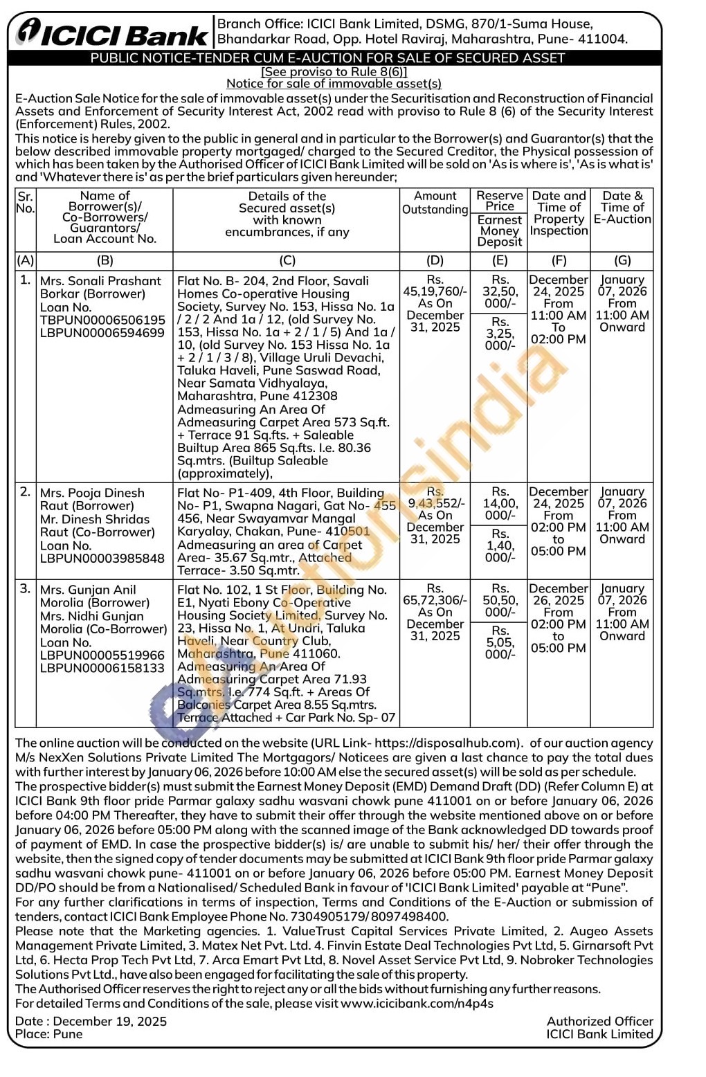 Flat No- P1-409, 4th Floor, Building No- P1, Swapna Nagari, Gat No-455 456, Near Swayamvar Mangal Karyalay, Chakan, Pune-410501 Admeasuring an area of Carpet Area-35.67 Sq.mtr., Attached Terrace- 3.50 Sq.mtr.