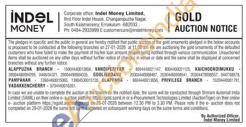 Indel money ltd Gold Auctions Auction in Alappuzha