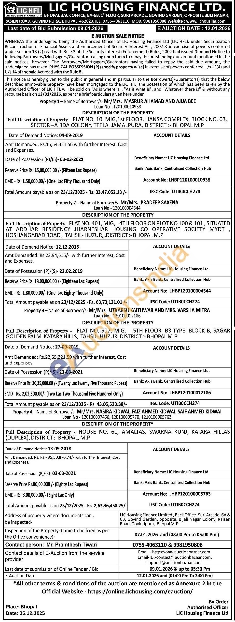 DESCRIPTION OF THE PROPERTY : Full Description of Property FLAT NO. 507, MIG, 5TH FLOOR, B3 TYPE, BLOCK B, SAGAR GOLDEN PALM, KATARA HILLS, TAHSIL-HUZUR, DISTRICT :- BHOPAL M.P