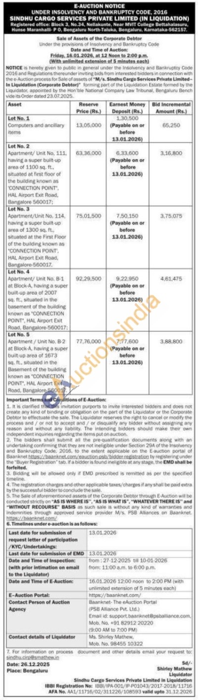 Apartment/Unit No. 114, having a super built-up area of 1300 sq. ft., situated at the First Floor of the building known as "CONNECTION POINT, HAL Airport Exit Road, Bangalore-560017.