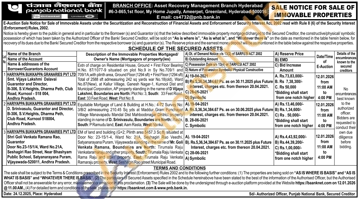 EM of land and building (G+2; Plinth area 5457.3 Sq.ft) situated at Door No: 23-15/1-4, Ward No: 21A, Seshagiri Rao Veedhi, Satyanarayana Puram, Vijayawada standing in the name of Mr. Goli Venkata Ramana, Boundaries are North: Tirumala Raju Venkataramaraju and other property, South: Tirumala Raju Venkata Rama Raju and other property, East: Tirumala Raju Venkata Ramaraju property, West: Seshagiri Rao street Municipal Road