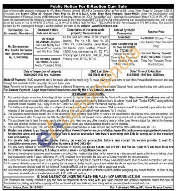 All that part and parcel of the property bearing Plot No 458 Ward No. 25. PHN. 49, Gram-Kayatha, Damar Road, Teh Tarana, Ujain, Madhya Pradesh 456001 Area Admeasuring (N 50 FT) Property Type: Land Area, Bult Up Area Property Area: 69700, 897.00