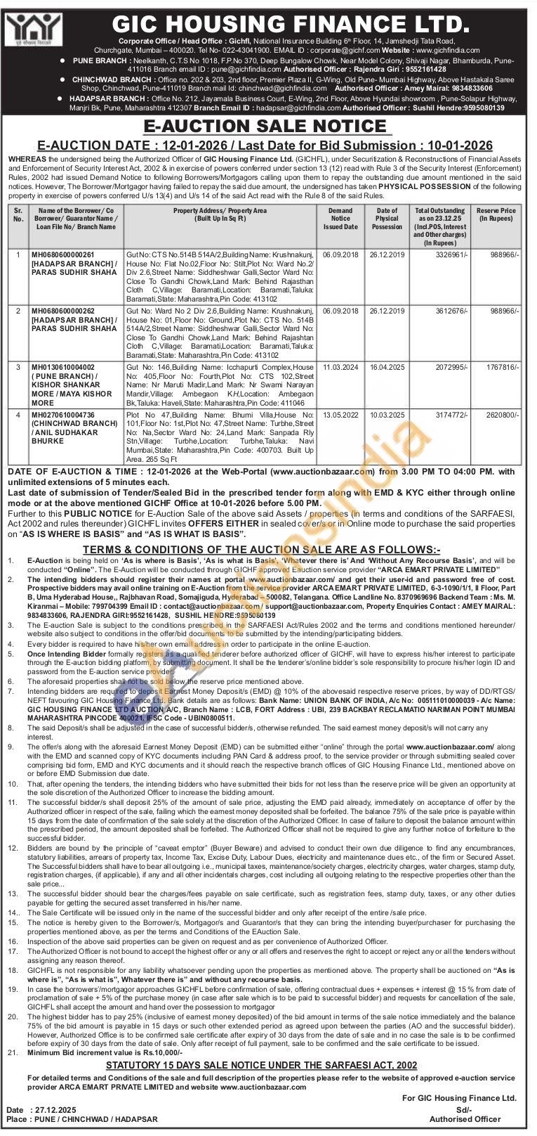 Gut No: 146, Building Name: Icchapurti Complex, House No: 405, Floor No: Fourth, Plot No: CTS 102, Street Name: Nr Maruti Madir, Land Mark: Nr Swami Narayan Mandir, Village: Ambegaon KH,Location: Ambegaon Bk, Taluka: Haveli, State: Maharashtra, Pin Code: 411046