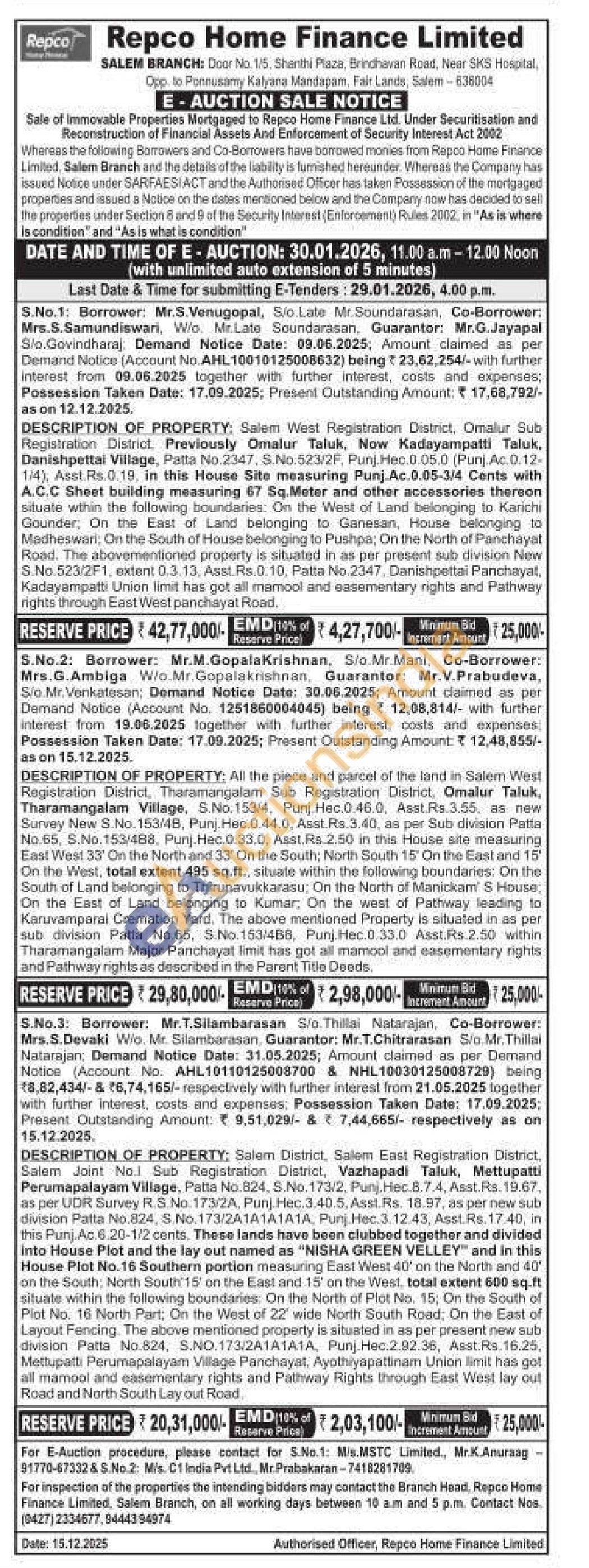 Contact Nos. (0427) 2334677.9444394974