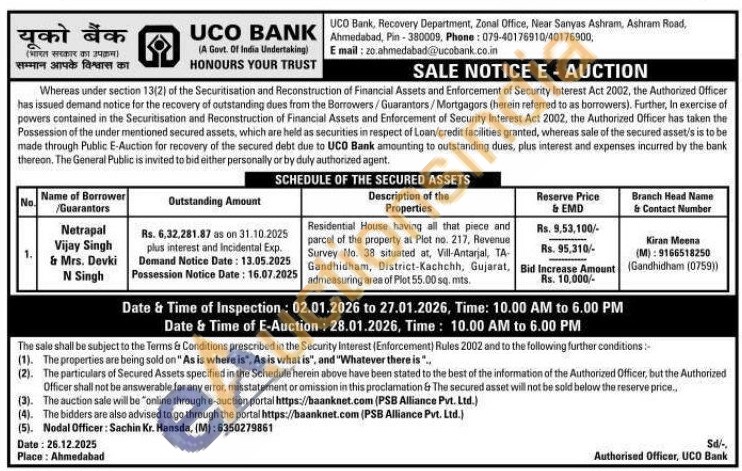 Residential House having all that piece and parcel of the property at Plot no. 217, Revenue Survey No. 38 situated at, Vill-Antarjal, TA Gandhidham, District-Kachchh, Gujarat, admeasuring area of Plot 55.00 sq. mts.