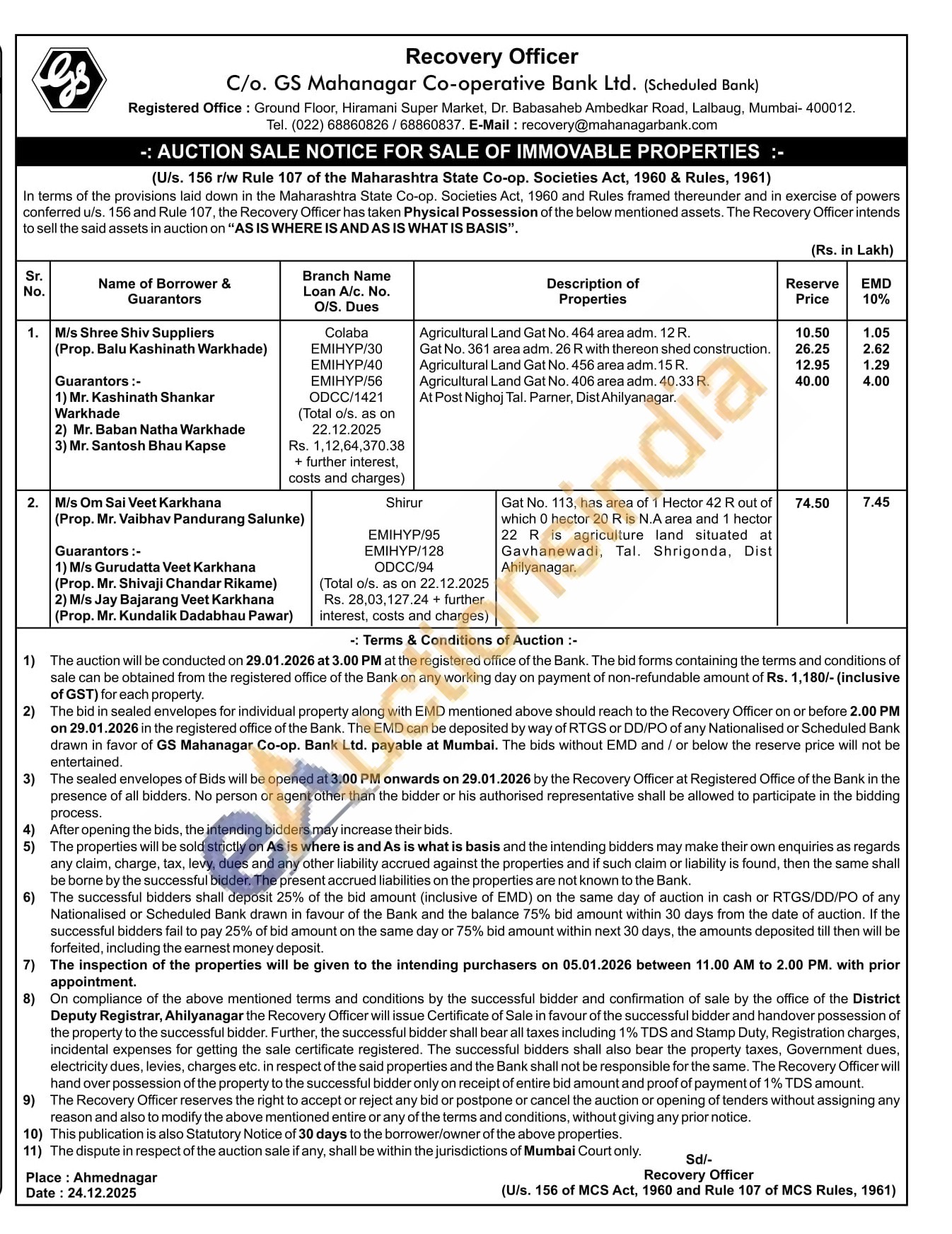 Agricultural Land Gat No. 464 area adm. 12 R. At Post Nighoj Tal. Parner, Dist Ahilyanagar