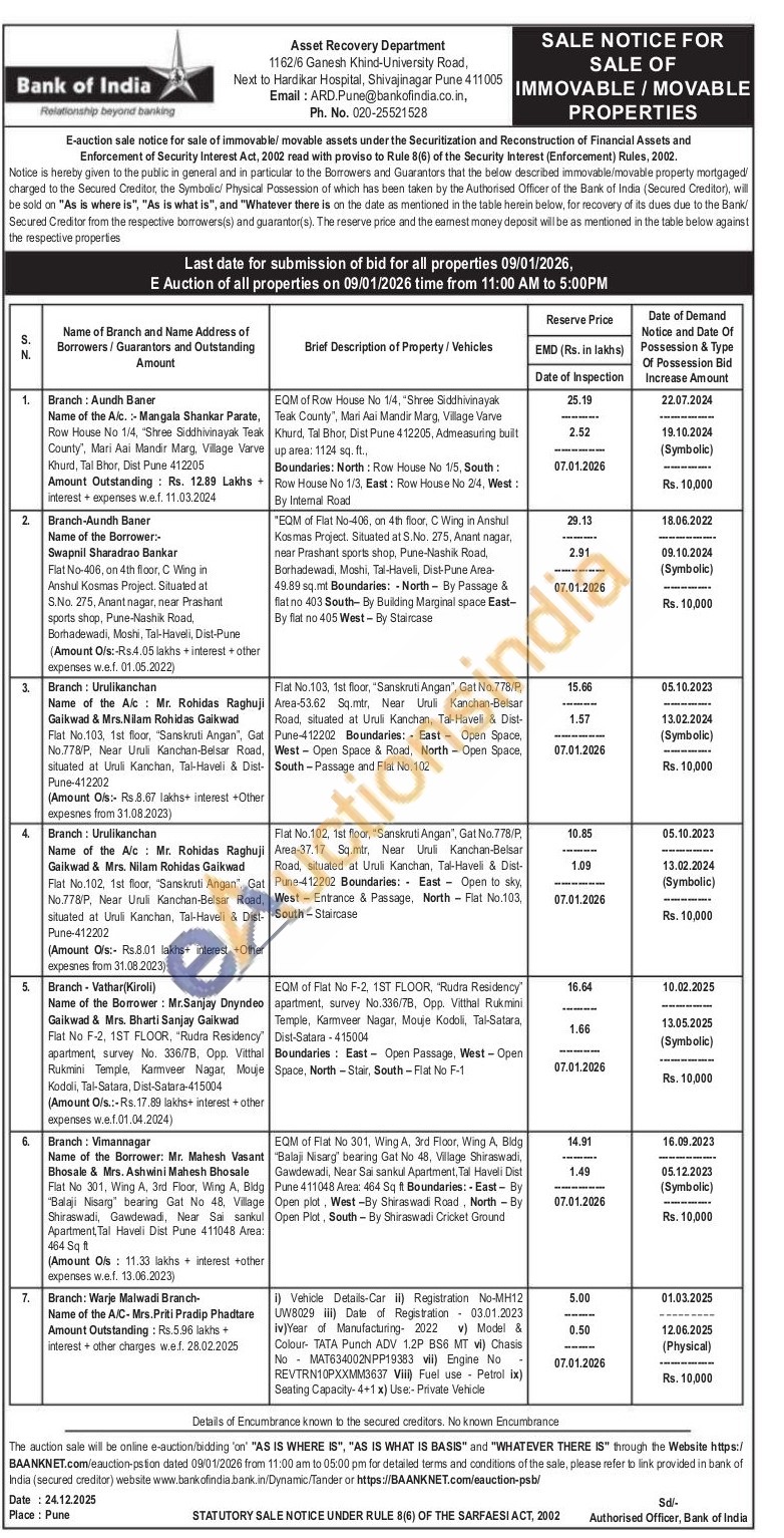 Contact No : Ph. No. 020-25521528/ Email: ARD.Pune@bankofindia.co.in