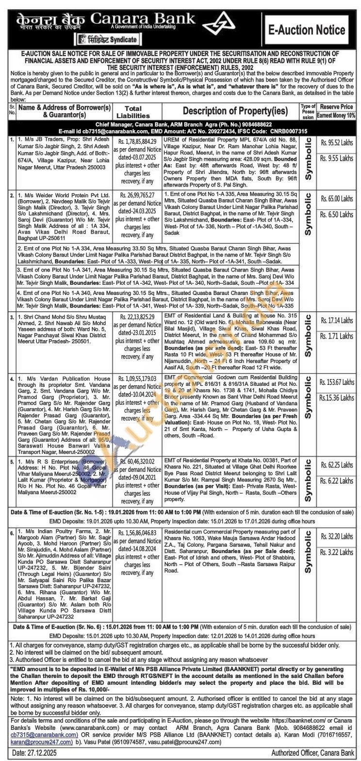 Residential cum Commercial Property measuring part of Khasra No. 1063, Wake Mauja Sarsawa Andar Hadood Z.A., Taj Colony, Pargana Sarsawa, Tehsil Nakur and Distt. Saharanpur, Boundaries (as per Sale deed): East- Plot of Idrish and others, West- Plot of Shabbira, North Plot of Others, South-Rasta Sarsawa Raipur Road.