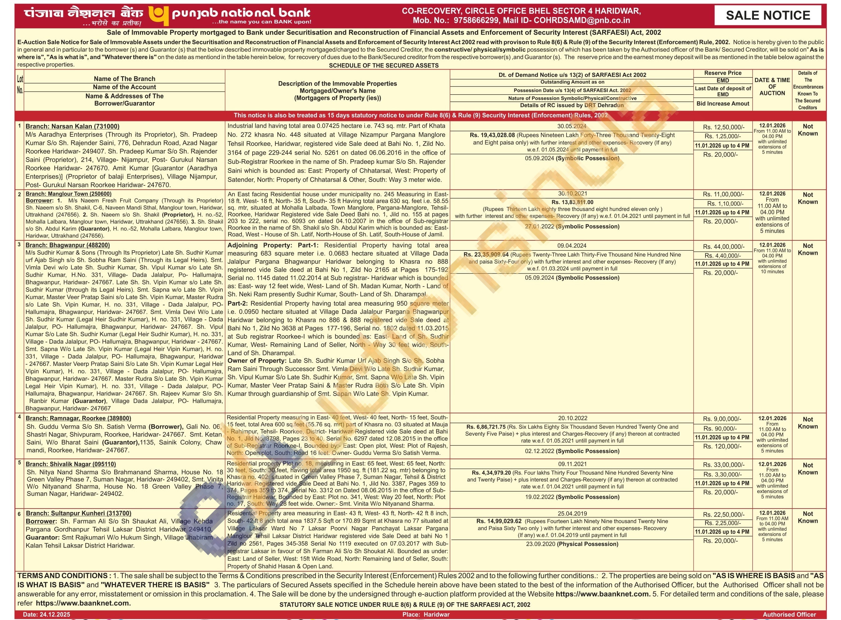 Contact No : 9758666299/ Mail ID- COHRDSAMD@pnb.co.in