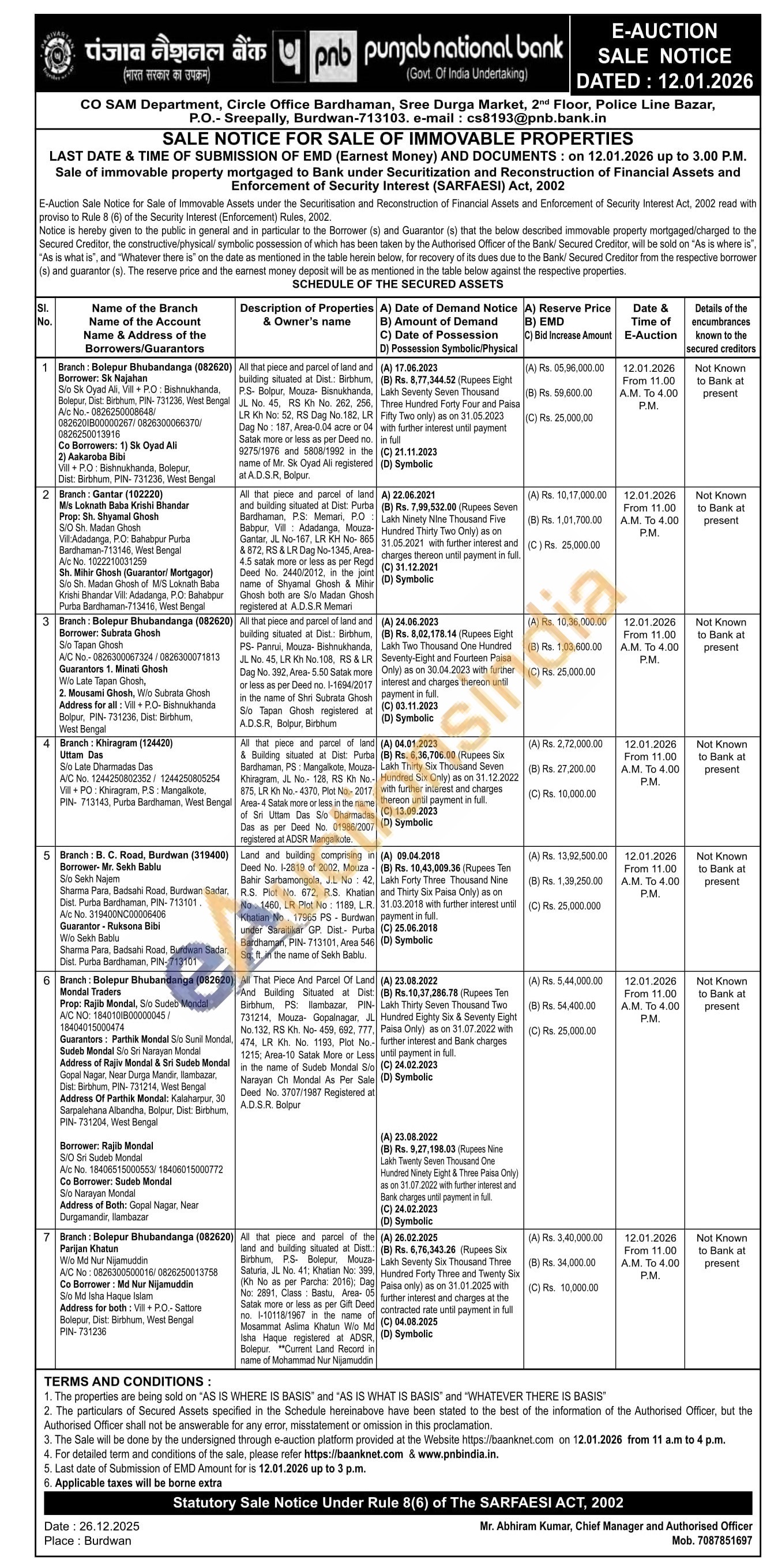 All that piece and parcel of land and building situated at Dist.: Birbhum, PS- Panrui, Mouza- Bishnukhanda, JL No. 45, LR Kh No. 108, RS & LR Dag No. 392, Area-5.50 Satak more or less as per Deed no. 1-1694/2017 in the name of Shri Subrata Ghosh S/o Tapan Ghosh registered at A.D.S.R, Bolpur, Birbhum