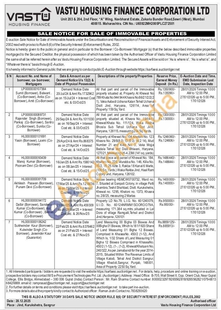 All that piece and parcel of Khewat No. 184, Khatoni No. 226, Murabba No. 146, Killa No. 15/2, 16, 25 Kitte 3, Rakba 18 Kanal 6 Marle, (100 Sq. Yards.) Waka Rakba Jind, Haal Ram Colony Jind, Haryana, 126102