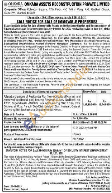 All part and parcels of Residential Plot (Non-Agricultural Nakrani land approved, residential plot) bearing Revenue Survey No Block No 42011, Nugendravila-79 Plots total admeasuring 7863.82 Sq mers Situated at Moje: Parsoll, Sub-Dist: Jalalpor, Dist.: Navsari, Gujarat Owned by Shri Subhashbhai Dharamshibhai Nikrani