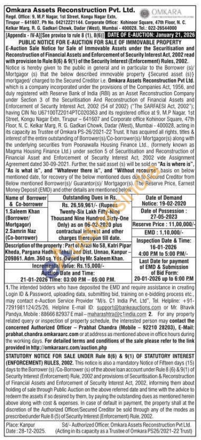 Description of the property: Part of Arazi No 58, Katri Pipar Kheda, Pargana Hadha, Tehsil and Dist. Unnao, Kanpur-209861. Adm. 360 sq. Yds. Owned by Mr. Saleem Khan