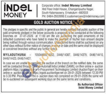 Indel money ltd Gold Auctions Auction in Mayiladuthurai