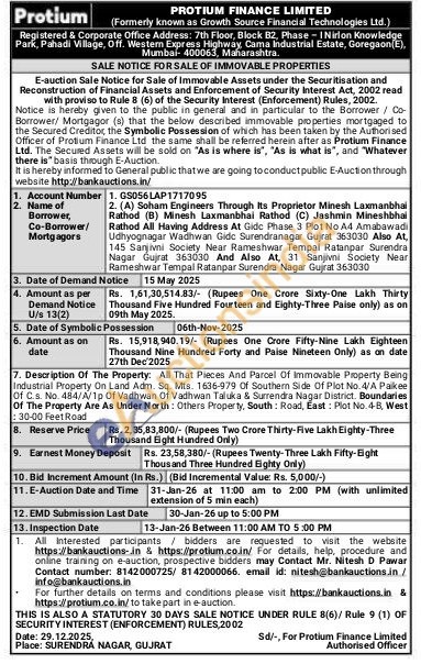 Description Of The Property: All That Pieces And Parcel Of Immovable Property Being Industrial Property On Land Adm. Sq. Mts. 1636-979 Of Southern Side Of Plot No. 4/A Palkee Of C.s. No. 484/A/1p Of Vadhwan Of Vadhwan Taluka & Surrendra Nagar District. Boundaries Of The Property Are As Under Narth: Others Property, South: Road, East: Plot No. 4-B, West