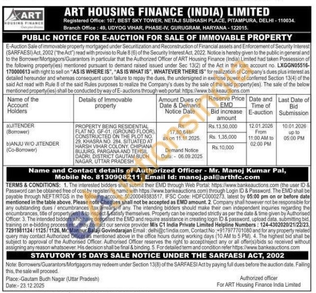 Authorized Officer - Mr. Manoj Kumar Pal, Mobile No. 8130908211