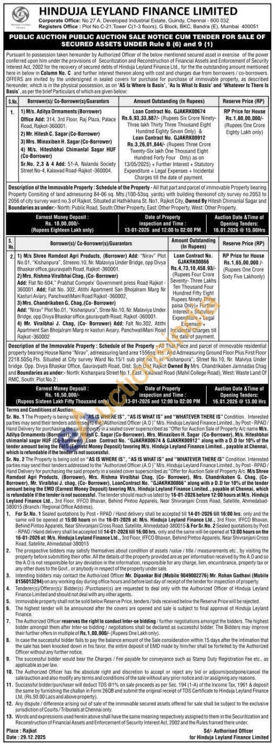 Authorized Officer Mr. Dipankar Bid (Mobile No : 9049002276) / Mr. Rohan Gadhavi (Mobile No : 8156013294)