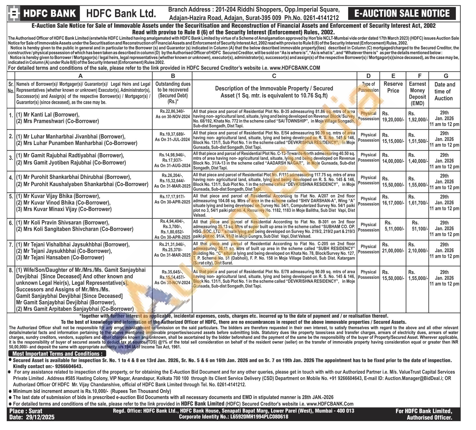 Contact No : 9266604643/ 0261-4141212.