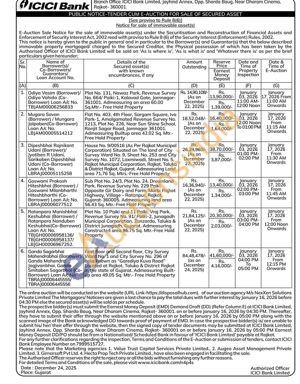 Plot No. 131, Nawaz Park, Revenue Survey No. 664/ Paiki-1, Kalavad Gate, Jamnagar-361001. Admeasuring an area 60.00 Sq.Mtr.- Free Hold Property