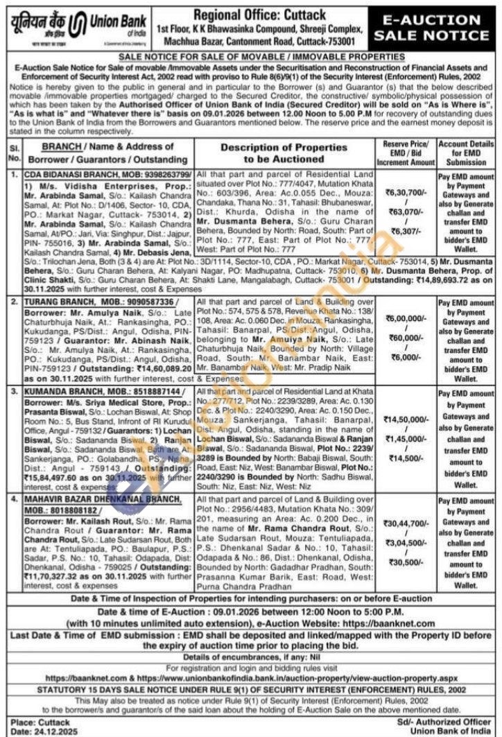All that part and parcel of Land & Building over Plot No.: 2956/4483, Mutation Khata No.: 309/201, measuring an Area: Ac. 0.200 Dec., in the name of Mr. Rama Chandra Rout, S/o.: Late Sudarsan Rout, Mouza: Tentuliapada, P.S.: Dhenkanal Sadar & No.: 10. Tahasil: Odapada & No.: 86, Dist.: Dhenkanal, Odisha, Bounded by North: Gadadhar Pradhan, South: Prasanna Kumar Barik, East: Road, West: Purna Chandra Pradhan