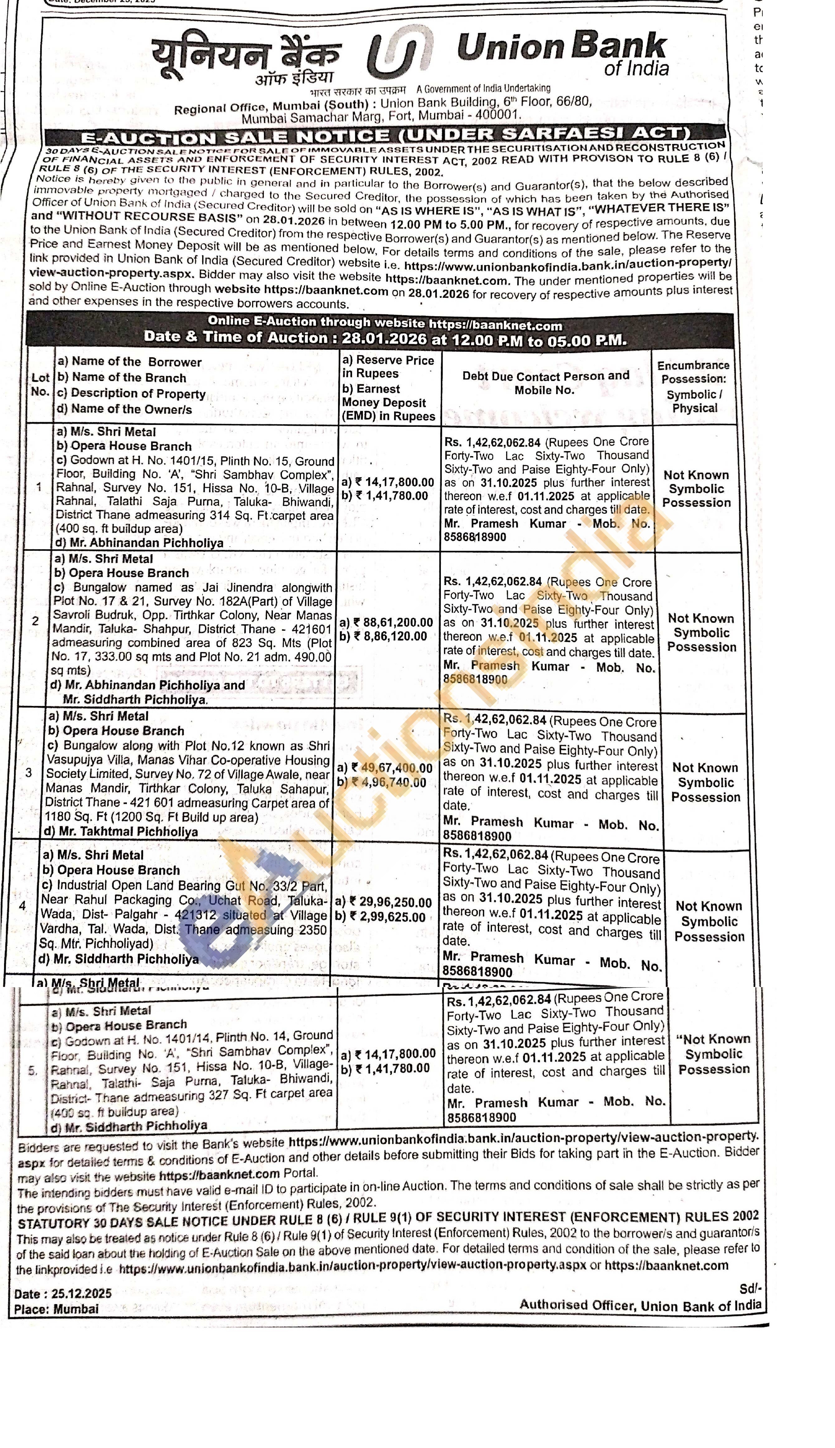 Bungalow along with Plot No. 12 known as Shri Vasupujya Villa, Manas Vihar Co-operative Housing a) 3 Society Limited, Survey No. 72 of Village Awale, near Manas Mandir, Tirthkar Colony, Taluka Sahapur, District Thane-421 601 admeasuring Carpet area of 1180 Sq. Ft (1200 Sq. Ft Build up area)