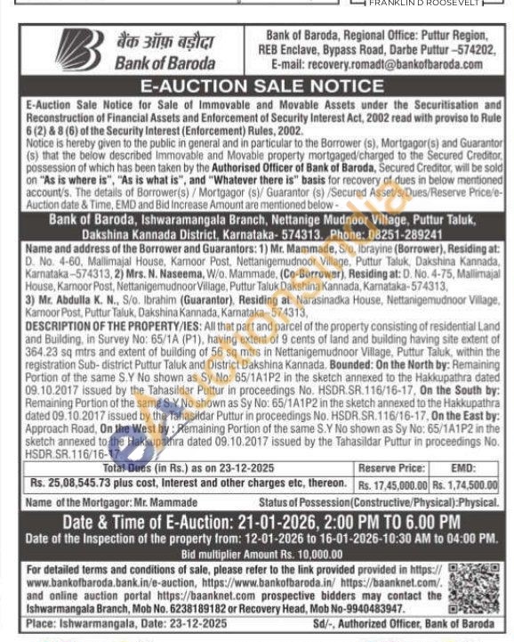 DESCRIPTION OF THE PROPERTY/IES: All that part and parcel of the property consisting of residential Land and Building, in Survey No: 65/1A (P1), having extent of 9 cents of land and building having site extent of 364.23 sq mtrs and extent of building of 56 sq mtrs in Nettanigemudnoor Village, Puttur Taluk, within the registration Sub-district Puttur Taluk and District Dakshina Kannada, Bounded: On the North by: Remaining Portion of the same S.Y No shown as Sy No: 65/1A1P2 in the sketch annexed to the Hakkupathra dated 09.10.2017 issued by the Tahasildar Puttur in proceedings No. HSDR.SR.116/16-17, On the South by: Remaining Portion of the same S.Y No shown as Sy No: 65/1A1P2 in the sketch annexed to the Hakkupathra dated 09.10.2017 issued by the Tahasildar Puttur in proceedings No. HSDR.SR.116/16-17, On the East by: Approach Road, On the West by: Remaining Portion of the same S.Y No shown as Sy No: 65/1A1P2 in the sketch annexed to the Hakkupathra dated 09.10.2017 issued by the Tahasildar Puttur in proceedings No. HSDR.SR.116/16-17.