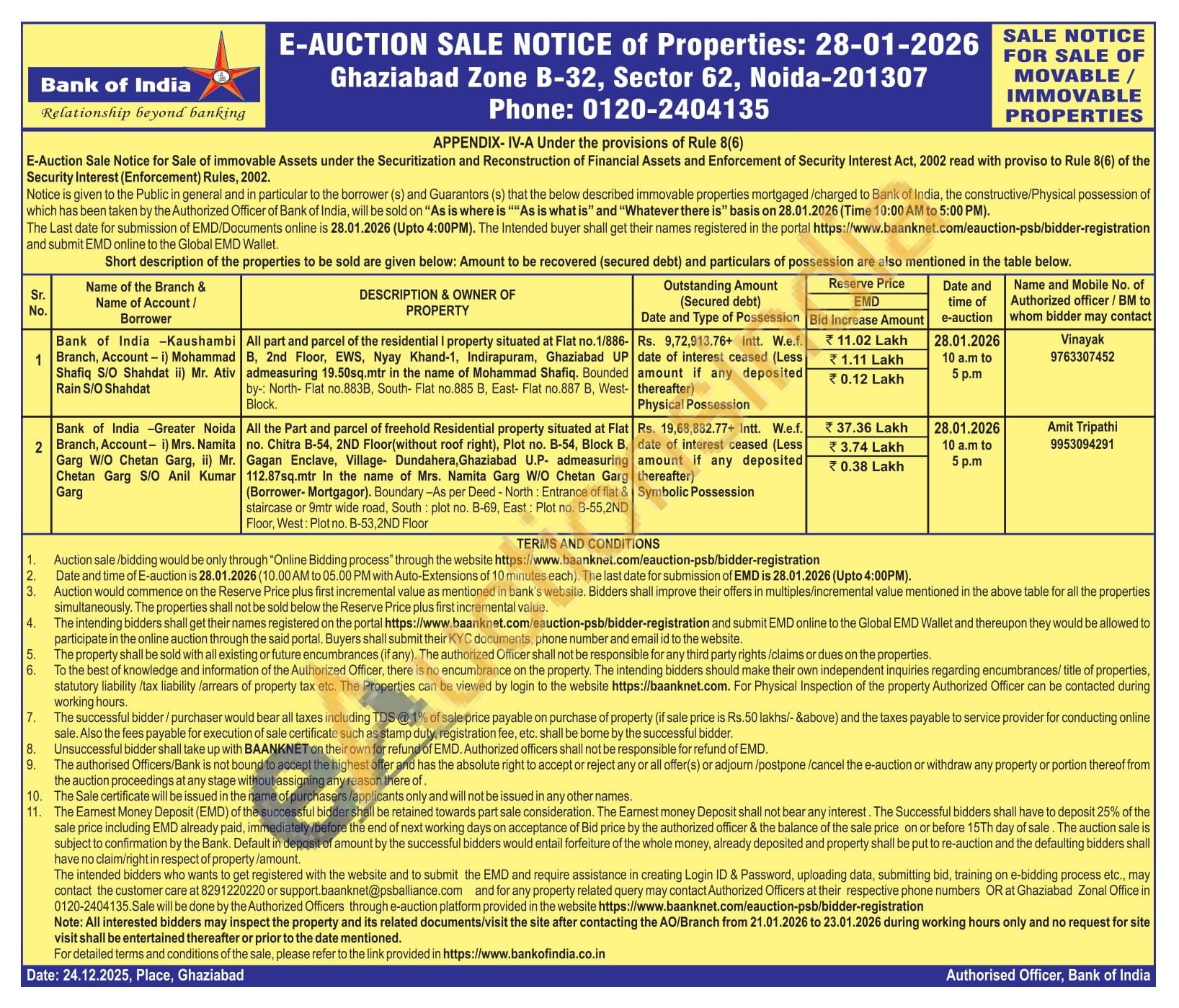 All part and parcel of the residential I property situated at Flat no.1/886-B, 2nd Floor, EWS, Nyay Khand-1, Indirapuram, Ghaziabad UP admeasuring 19.50sq.mtr in the name of Mohammad Shafiq. Bounded by: North-Flat no.883B, South- Flat no.885 B, East- Flat no.887 B, West-Block.