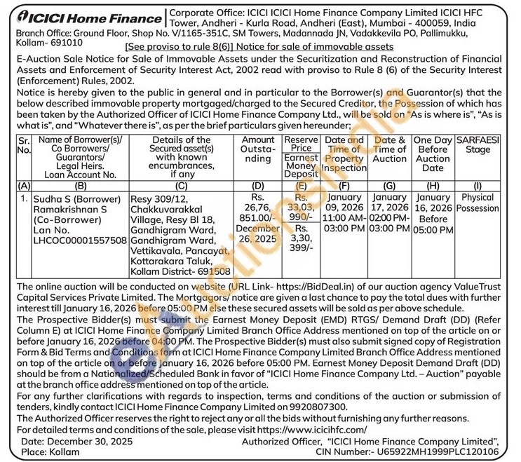 Resy 309/12, Chakkuvarakkal Village, Resy Bl 18, Gandhigram Ward, Gandhigram Ward, Vettikavala, Pancayat, Kottarakara Taluk, Kollam District-691508
