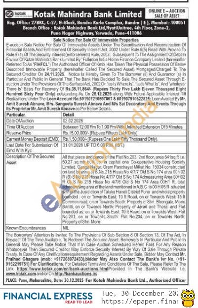 All that piece and parcel of the Fiat No.203, 2nd floor, area 541sq.ftie 50.27 sqmtr built up, in capital one Co-operative Housing Society Limited, Ganga Nagar. Gram Panchayat Milkat No. 15034 constructed on land bearing a) 5. No.215 Hissa No 4/7/7 Old SNo 174 area 00h 02 R(B) S No 215 Hissa No 4/7/7 Old S No 174 Admeasuring Area 00H02 RCS No 215 Hisaa No 4/776 Old S No 174 Area 00H1 R tota admessing area of the land mentioned in A,B.C is 00H05 R-siluated with in the Jusidiction of Taluka Havel District Pune and whole property bounded on ar Towards East: 10 Road, on or Towards West 151 Common road, on or Towards South: Property of Shri. Bhongale, Mane Bantti, on or Towards North Property of Jarad and Thora, and Flat bounded as: on or Towards East 10 it Road, on or Towards West: Flat No 201, on or Towards South: Fat No 204, on or Towards North Property of Shri. More