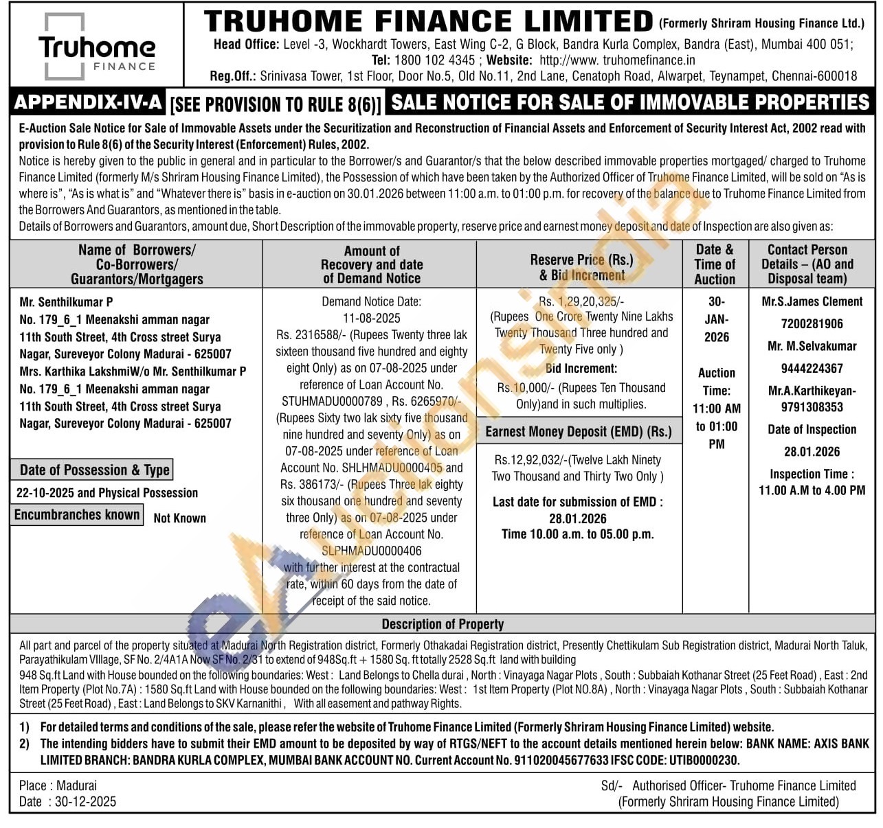All part and parcel of the property situated at Madurai North Registration district, Formerly Othakadai Registration district, Presently Chettikulam Sub Registration district, Madurai North Taluk, Parayathikulam VIllage, SF No. 2/4A1A Now SF No. 2/31 to extend of 948Sq.ft + 1580 Sq. ft totally 2528 Sq.ft land with building 948 Sq.ft Land with House bounded on the following boundaries: West: Land Belongs to Chella durai, North: Vinayaga Nagar Plots, South: Subbaiah Kothanar Street (25 Feet Road), East: 2nd Item Property (Plot No.7A): 1580 Sq.ft Land with House bounded on the following boundaries: West: 1st Item Property (Plot NO.8A), North: Vinayaga Nagar Plots, South: Subbaiah Kothanar Street (25 Feet Road), East: Land Belongs to SKV Karnanithi, With all easement and pathway Rights