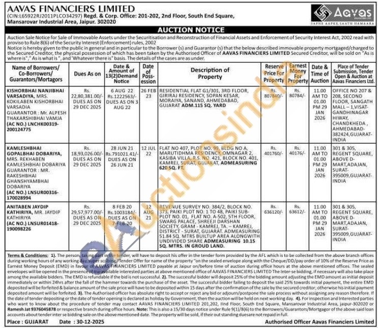 RESIDENTIAL FLAT G1/301, 3RD FLOOR, GIRIRAJ RESIDENCY, SOPAN KESAR, MORAIYA, SANAND, AHMEDABAD, GUJARAT ADM.115 SQ. YARD