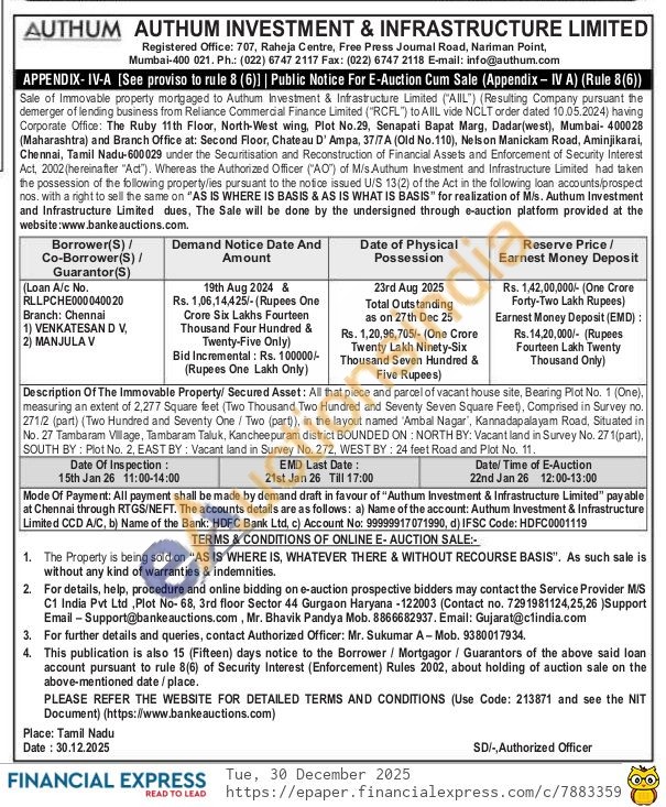 All that piece and parcel of vacant house site, Bearing Plot No. 1 (One), measuring an extent of 2,277 Square feet (Two Thousand Two Hundred and Seventy Seven Square Feet), Comprised in Survey no. 271/2 (part) (Two Hundred and Seventy One/Two (part)), in the layout named 'Ambal Nagar, Kannadapalayam Road, Situated in No. 27 Tambaram Village, Tambaram Taluk, Kancheepuram district BOUNDED ON: NORTH BY: Vacant land in Survey No. 271(part), SOUTH BY: Plot No. 2, EAST BY: Vacant land in Survey No. 272, WEST BY: 24 feet Road and Plot No. 11.